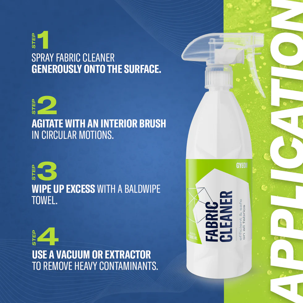 A powerful solution to clean fabric upholstery. Its formula has been designed to remove dirt, stains and odour effectively and safely on all types of fabrics. It will leave the interior fresh, clean and ready for protection with Q² FabricCoat.