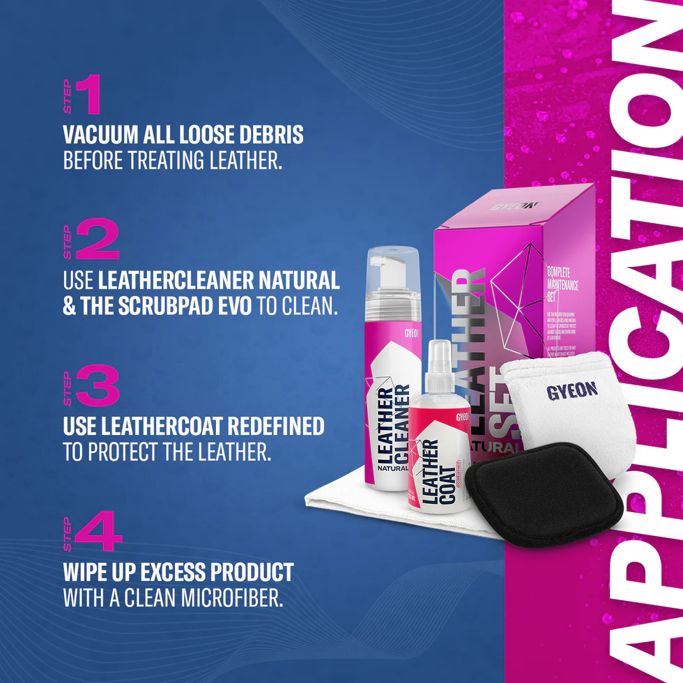 Q²M LeatherSet Natural is the complete solution for your leather maintenance. Combining Q²M LeatherCleaner Mild, a safe yet powerful pre-coating cleaner and Q²M LeatherCoat, it becomes the ideal leather maintenance & protection solution.